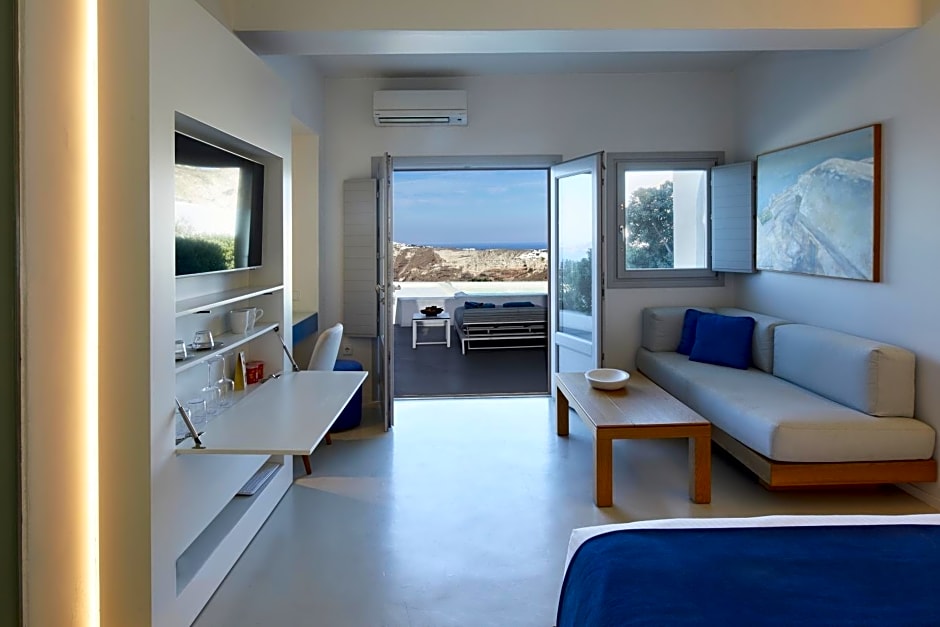 Enjoying Aegean Sea views, this suite is located on the ground floor and offers a safe, air conditioning and a TV. Heated plunge pool jacuzzi.